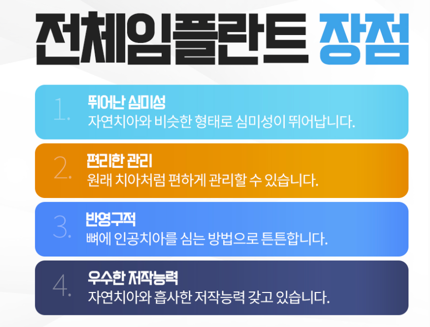 아울러 전체 임플란트를 할 경우 식립수를 확인하는 것도 중요하다.