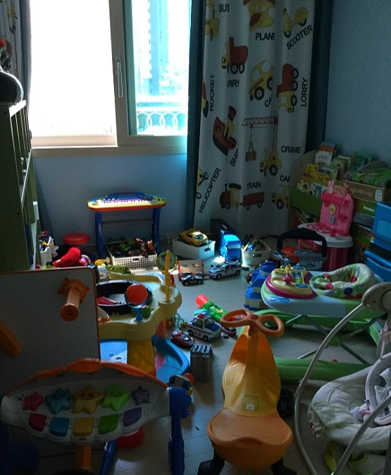 온 집안이 아이의 놀이터가 되어 있었기에 전체적인 공간 재 배치와 놀이방을 정리정돈
